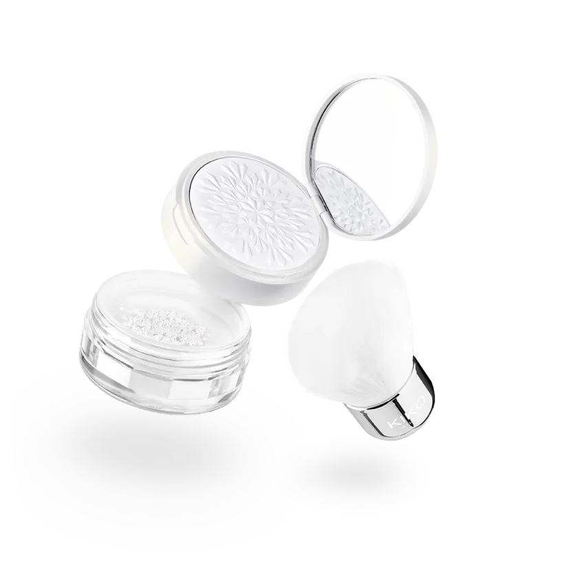 One product, two powders and textures that work together, endless ways to shine. Create the perfect base for your make-up using the compact powder and set it with the loose powder. Why you’ll love them The compact powder: -Light, pressed texture with natural matt finish for a soft-focus effect before applying make-up -Universal transparent finish, suitable for all skin tones -Clings perfectly to the face like a second skin -Scented with delicious notes of vanilla -Embellished with a refined snowflake design The loose powder: -Air-light and super soft, it fixes make-up without altering it -Naturally radiant finish that makes the face glow beautifully -Very easy to apply and layer, and doesn’t weight the skin down -Mini kabuki brush included -Ultra versatile, you can use the powders individually or in order | INGREDIENTS: KIKO MILANO is dedicated to maintaining the accuracy of the ingredient lists on this website. However, because ingredients are subject to change, we cannot guarantee that these lists are complete and/or up-to-date. For an accurate listing of ingredients in each product, please refer to your product packaging. LOOSE POWDER INGREDIENTS: MICA, PERLITE, SQUALANE, CAPRYLYL GLYCOL, ETHYLHEXYLGLYCERIN, CAPRYLIC/CAPRIC TRIGLYCERIDE, VITIS VINIFERA FRUIT EXTRACT (VITIS VINIFERA (GRAPE) FRUIT EXTRACT), TOCOPHEROL. PRESSED POWDER INGREDIENTS: SYNTHETIC FLUORPHLOGOPITE, ZINC STE ARATE, ALUMINUM STARCH OCTENYLSUCCINATE, DIMETHICONE, CELLULOSE, BORON NITRIDE, COCO-CAPRYLATE/CAPRATE, OCTYLDODECYL STEAROYL STEARA TE, CAPRYLYL GLYCOL, ETHYLHEXYLGLYCERIN, CAPRYLIC/CAPRIC TRIGLYCERIDE, AROMA (FLAVOR), VANILLIN, LINALOOL, VITIS VINIFERA FRUIT EXTR ACT (VITIS VINIFERA (GRAPE) FRUIT EXTRACT), TOCOPHEROL, CI 77891 (TITANIUM DIOXIDE), CI 77491 – CI 77492 – CI 77499 (IRON OXIDES).