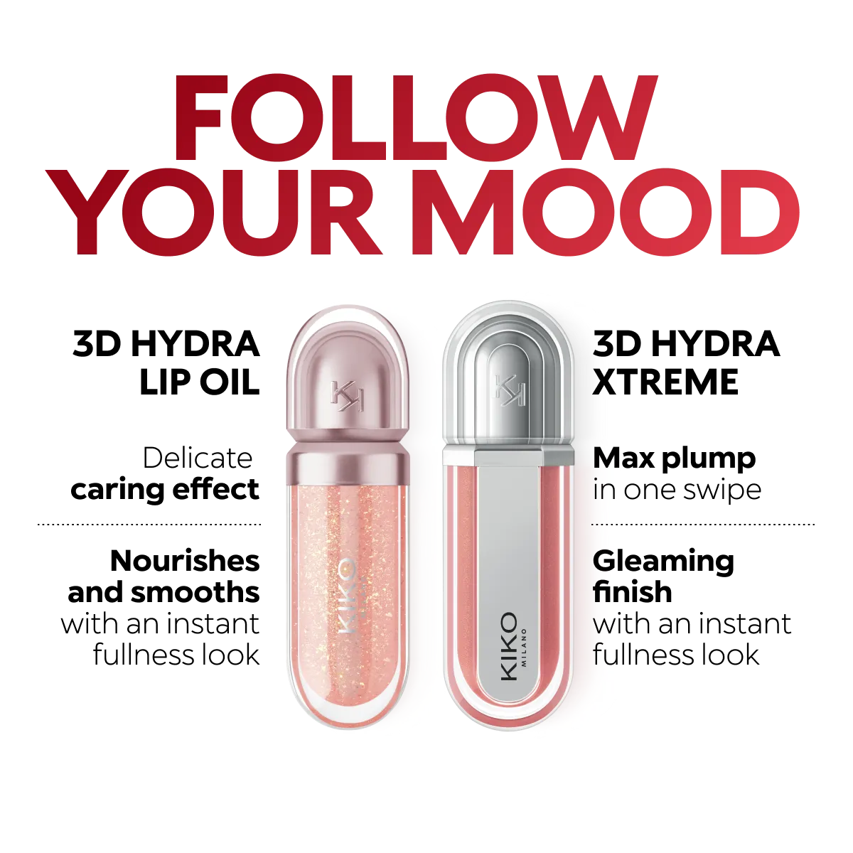 Instant plumping, hydration* and shine like never before: KIKO’s most viral and best-loved lip gloss, now in an extreme version. Indulge in a unique sensory experience and treat yourself to full, soft, radiant-looking lips with 3D volume from the very first stroke. A new era for your lips: -Extreme plumpness from the first application -Immediate hydration*, maximum comfort -Mirror-like shine thanks to ultra-reflective micro-pearls -Enriched with Hyaluronic Acid beads, ginger, liquorice extract, cupuaçu butter and natural oils -Lightweight, non-sticky texture -Luminous, versatile and sophisticated shades in nude and pink, iconic must-haves for your lip combos -Flocked-tip applicator for precise and fast application -An exclusive design with a reflective bottle to control your look whenever you want, wherever you are