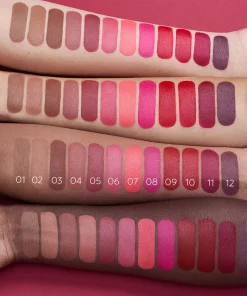 | Colour | All shades (12), 01 Melted Sienna, 02 Almond vibes, 03 Wild Savana, 04 Posh Bite, 05 Brick the rules, 06 Sweet Sorbetto, 07 Coral cue, 08 Magenta, 09 The Diva, 10 Chili kiss, 11 At the Opera, 12 Under my spell, Change (12) |