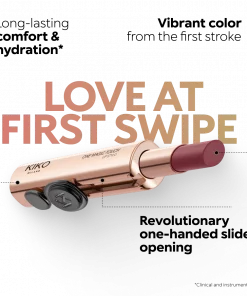 Long-lasting hydration*, rich colour from the very first stroke, maximum precision and comfort with just one magic touch. A lipstick with a revolutionary one-handed slide opening system for velvety, fabulous lips before you can say wow. Magic with every application: -Sensual texture that melts onto the lips, dressing them with pure, vibrant shades -Leaves lips silky and moisturised*. -Ideal for classic and super chic lip combos, and extremely easy to open, apply and love -Stick format and maximum practicality | INGREDIENTS: KIKO MILANO is dedicated to maintaining the accuracy of the ingredient lists on this website. However, because ingredients are subject to change, we cannot guarantee that these lists are complete and/or up-to-date. For an accurate listing of ingredients in each product, please refer to your product packaging. INGREDIENTS: DIMETHICONE, OCTYLDODECANOL, COCO-CAPRYLATE/CAPRATE, SYNTHETIC WAX, SILICA, DIATOMACEOUS EARTH, POLYGLYCERYL-4 ISOSTEAR ATE, C10-18 TRIGLYCERIDES, DIMETHICONE/VINYL DIMETHICONE CROSSPOLYMER, CAPRYLIC/CAPRIC TRIGLYCERIDE, C18-36 ACID GLYCOL ESTER, PENTA ERYTHRITYL TETRA-DI-T-BUTYL HYDROXYHYDROCINNAMATE, BRASSICA ALBA SPROUT EXTRACT, TOCOPHEROL, AROMA (FLAVOR).+/- (MAY CONTAIN) : CI 1 5850 (RED 7 LAKE), CI 77891 (TITANIUM DIOXIDE), CI 45380 (RED 22 LAKE), CI 19140 (YELLOW 5 LAKE), CI 45410 (RED 28 LAKE), CI 77491 – CI 77492 – CI 77499 (IRON OXIDES), CI 42090 (BLUE 1 LAKE).