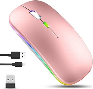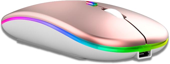 Slim Silent Rechargeable Wireless Mouse with RGB LED – Rose Gold